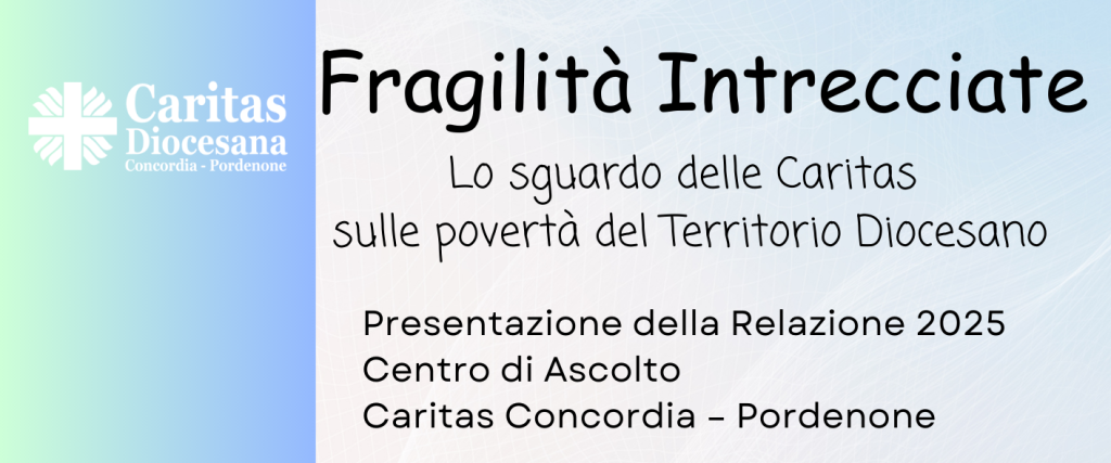 Doppio appuntamento con la presentazione della Relazione del Centro di Ascolto Diocesano sull'attività dell'anno 2025 FRAGILITÀ INTRECCIATE Lo sguardo delle Caritas sulle povertà del territorio diocesano Presentazione - Caritas -…