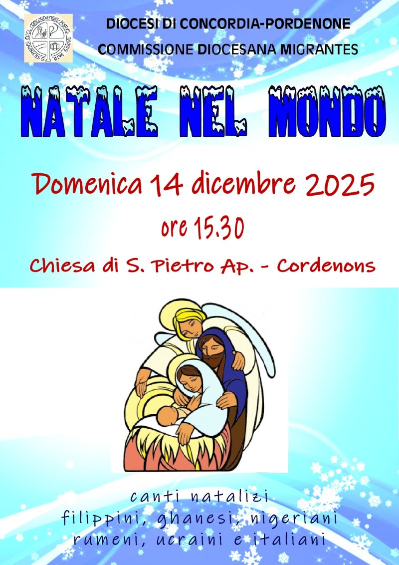 La Commissione Diocesana Migrantes invita tutti alla tradizionale manifestazione “Natale nel Mondo”, un appuntamento ormai stabile della vita diocesana, pensato come momento di incontro e di condivisione tra le diverse comunità cattoliche presenti sul nostro territorio. L’iniziativa vuole valorizzare la ricchezza delle culture che compongono la nostra Chiesa locale, attraverso la proposta dei canti natalizi tradizionali offerti dalle comunità filippina, ghanese, nigeriana, rumena, ucraina e … Continua a leggere »