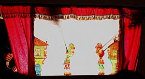 Spettacolo di Karagöz, la forma turca del teatro delle ombre, una delle più antiche di spettacolo popolare, realizzato proiettando figure articolate e colorate su uno schermo semitrasparente