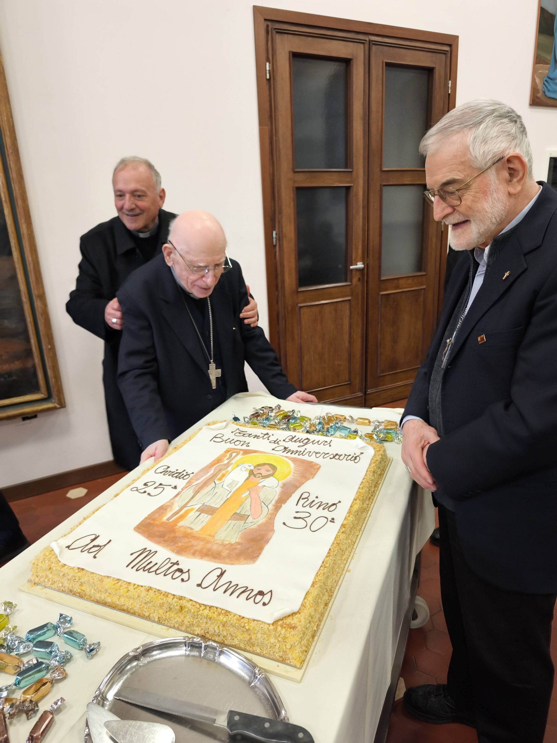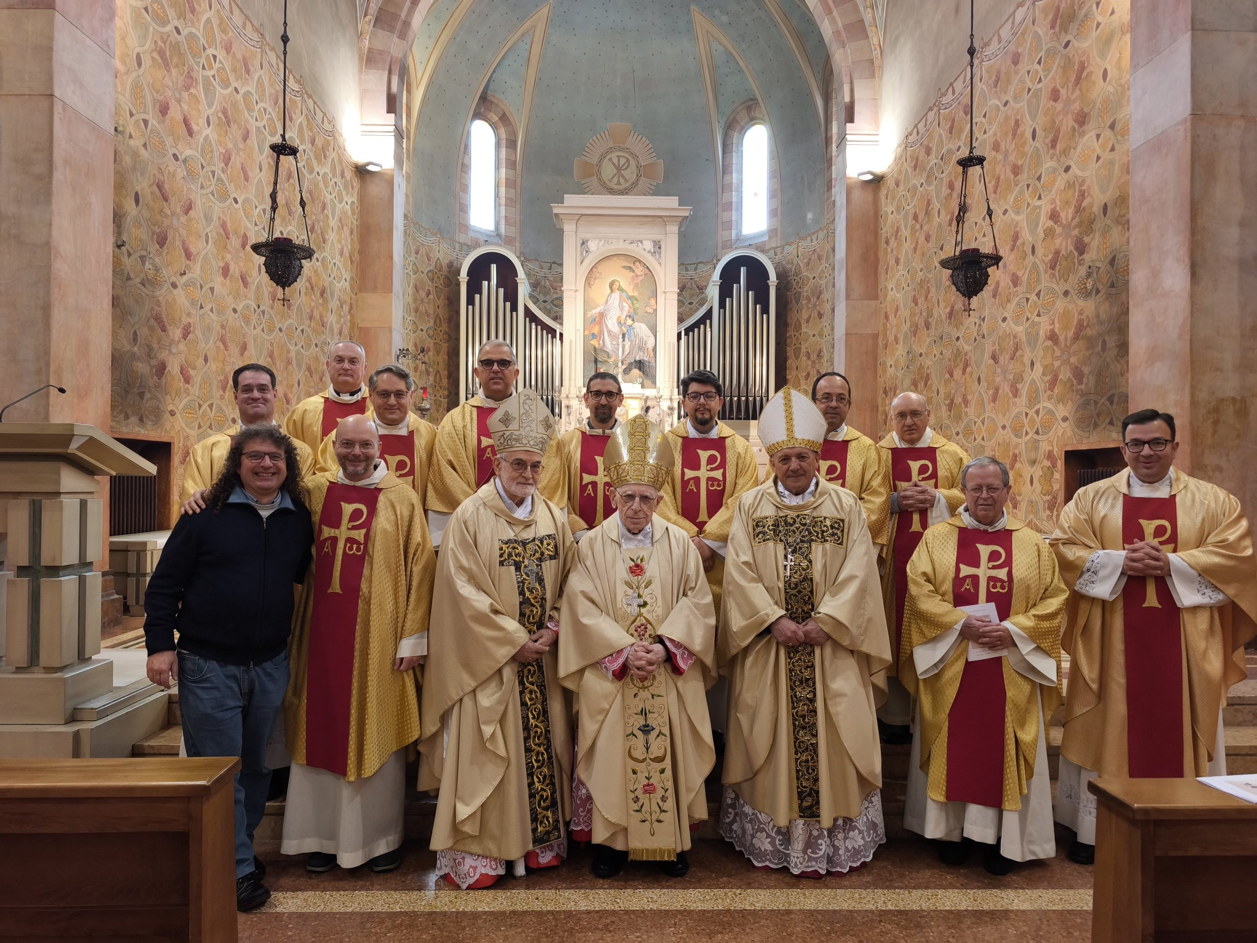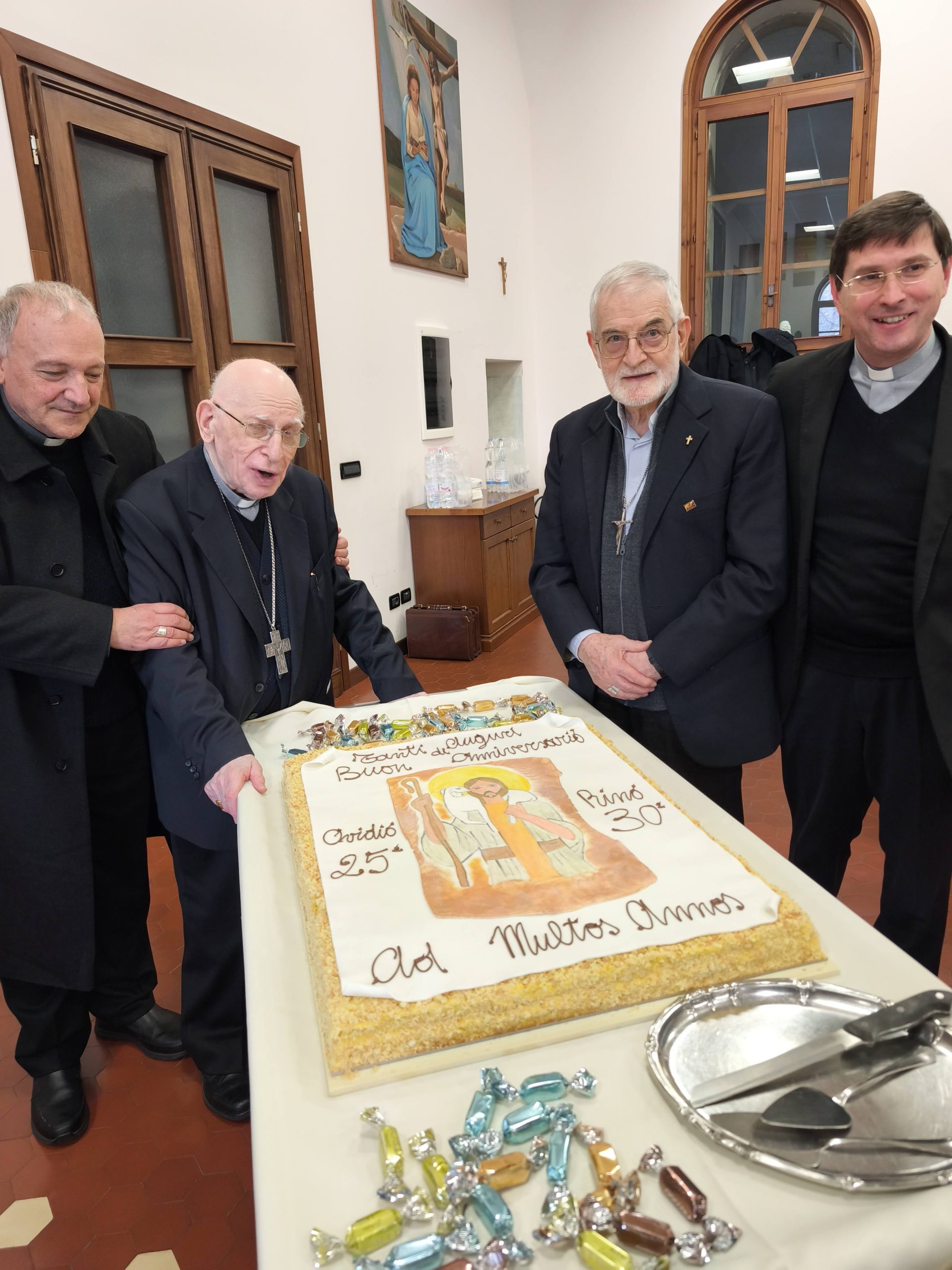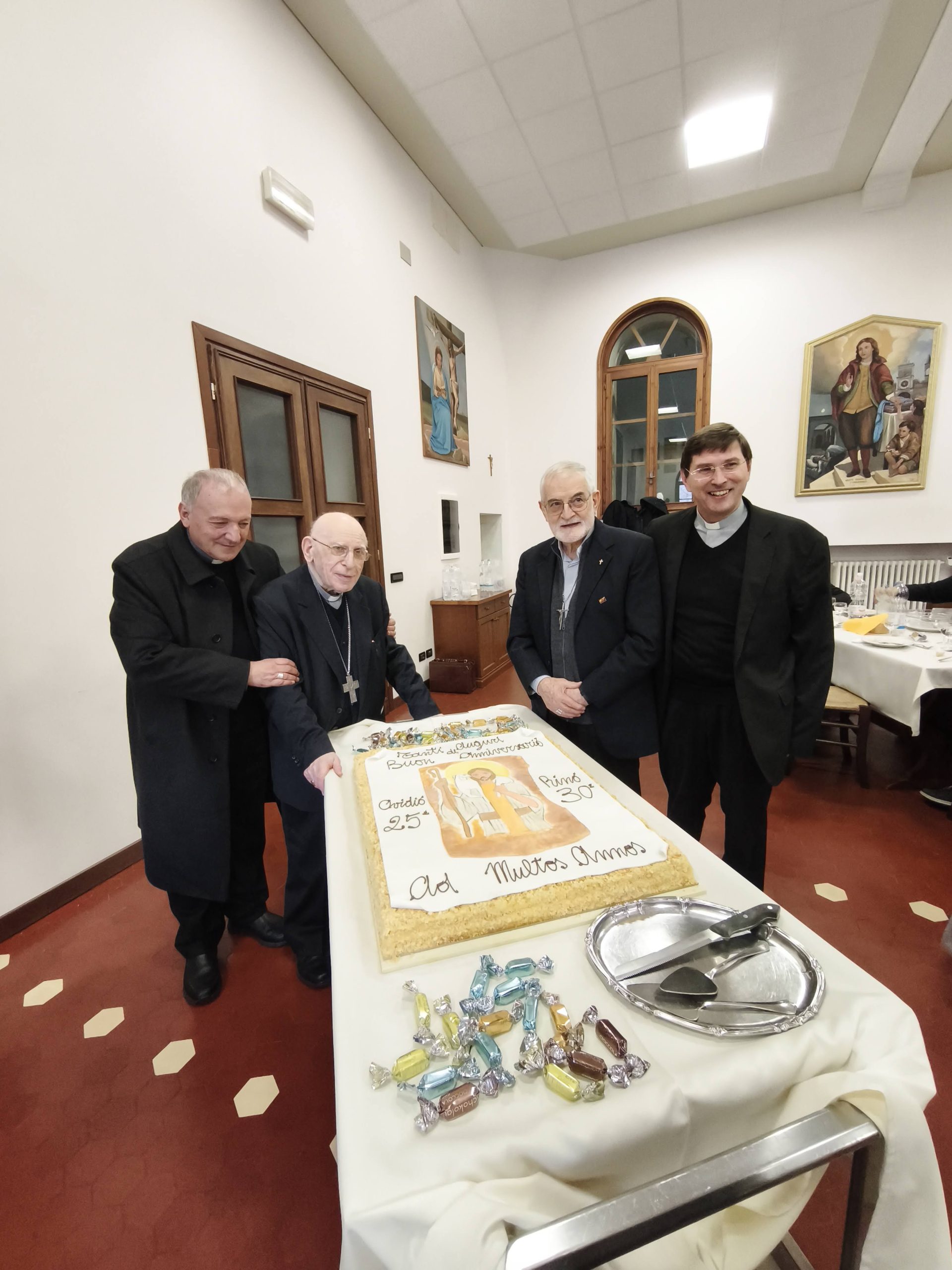 Si è tenuto giovedì 4 dicembre nella chiesa del Seminario a Pordenone al termine del ritiro mensile del clero la festa con la celebrazione eucaristica e il pranzo comunitario del 25esimo di ordinazione episcopale del vescovo Ovidio e del 30esimo di ordinazione episcopale del vescovo Rino dei comboniani.