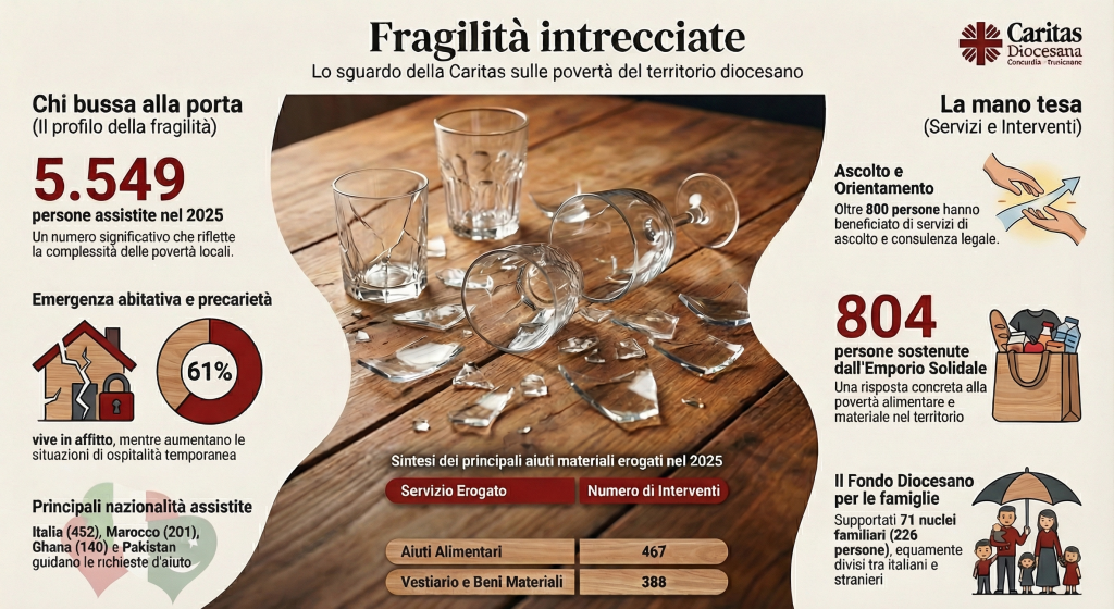 Dai rapporti emerge con chiarezza un dato: la povertà non si presenta quasi mai da sola. Le situazioni più gravi sono quelle in cui si accumulano più forme di disagio, dando origine a quella che viene definita “povertà cumulata”. In questi casi, la vulnerabilità diventa più profonda e duratura, spesso difficile da spezzare.