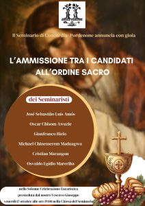 A poche settimane dall’inizio del nuovo anno formativo, il Seminario vivrà con gioia un momento importante per il cammino di sei seminaristi: l’Ammissione tra i candidati agli Ordini Sacri. Manifestando la loro volontà tendenzialmente definitiva di servire il Signore come presbiteri nella Chiesa Diocesana, i candidati ricevono, nella Benedizione del Vescovo, la conferma per il loro cammino vocazionale, che potrà così procedere nella tappa configuratrice e, in futuro, verso l’ordinazione.